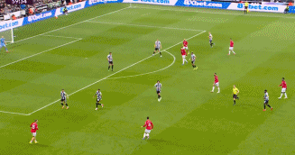 第48分钟,戈登左路拿球内切到禁区,被B费放倒裁判判罚点球,戈登主罚点球球进,纽卡1-0曼联。