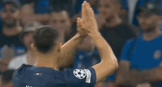第12分钟,维蒂尼亚直塞,杜埃传中,国米旧将阿什拉夫门前轻松推射破门,巴黎1比0领先!
